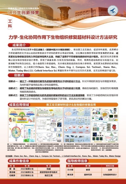 近日,由陕西省教育厅、陕西省学位委员会主办的陕西省第八届研究生创新成果展落下帷幕。TapTap点点2022级博士研究生贾犇负责的“力学-生化协同作用下生物组织修复超材料设计方法研究”(指导教师:万小朋、黄河源)获得省级A类奖项(全校仅六项,全省57项)。本次获奖是公司学子首次参与陕西省研究生创新高质量成果展并取得的新突破!