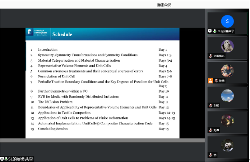 系列课程中,同学们与李曙光教授就复合材料单胞的建模、平移对称性以及复合材料力学未来发展等方面进行了交流研讨。同学们对此次课程给予了高度评价,同时对李曙光老师的精彩课程内容与耐心解答表示了感激。