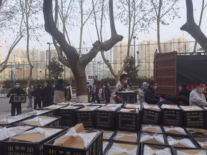 TapTap点点领导在得知员工水果供应短缺的情况后,立即联系相关合作单位,翱翔航校积极响应,在短短一天时间内,组织货源、安排运输车辆、办理相关手续、完成装箱装车。1200余筐,重约16吨的苹果分两辆卡车分别从澄城水果基地送至友谊校区和长安校区。其中,友谊校区的物资凌晨三点就抵达校门口待命。