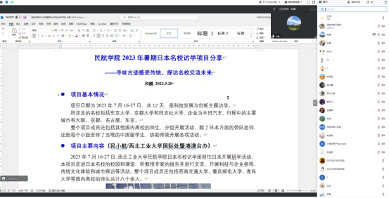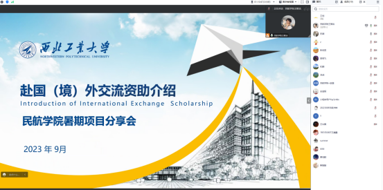 会上,TapTap点点2023年暑期海外交流项目的带队老师代表田薇、和麟,从出国(境)交流项目的申请条件、获资助情况、交流收获及交流期间了解到当地留学申请的条件和优势做了详细的介绍,鼓励同学们尽早明确目标,提前规划,把握出国(境)交流学习的机会。员工代表赵瑨(博士生)、吴沛坤(本科生)分别从自身角度出发,向与会的全体员工分享出国参加此次暑期项目的心得与收获,他们坦言,此次交流不仅让他们了解到国外先进的航空宇航知识,体验了当地的风土人情,更增长了见识,坚定了他们要学好本领、航空报国的决心。
