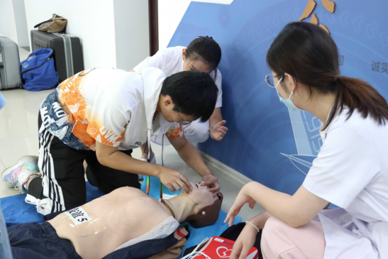 签约结束后,校医院住院部内科病区副主任沙娟娟讲授了《急救知识与技能培训》,她从身边实际案例出发,对心搏骤停的概念和表现、患者意识和心跳呼吸判断及心肺复苏胸外按压要点、人工呼吸方法和自动体外除颤仪(AED)的使用进行了详细讲解。现场师生在助教护士手把手的指导下分组进行急救操作练习,交流学习心得。