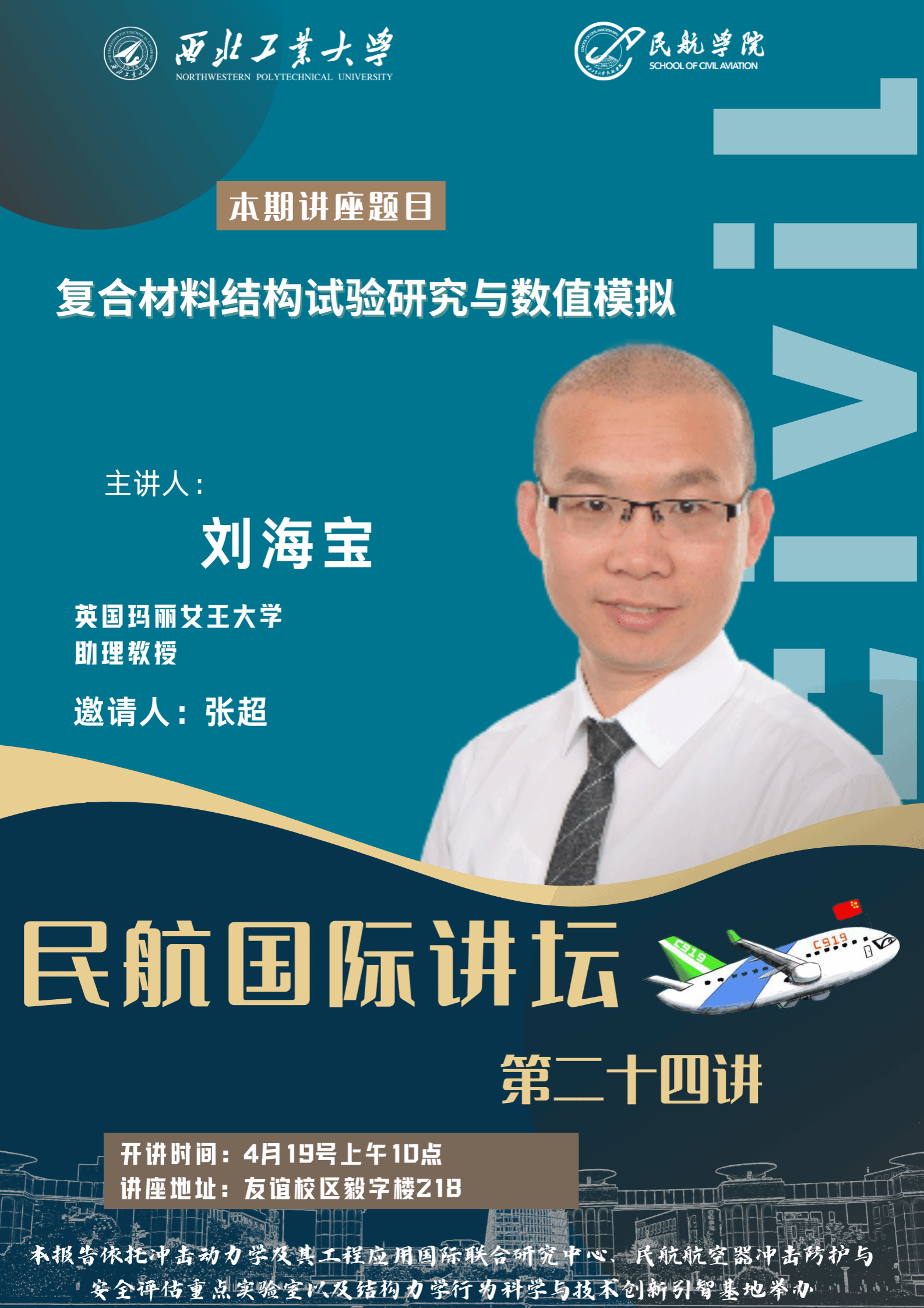 刘海宝,男,工学博士,玛丽女王大学,助理教授。2014 年获庞巴迪-女王大学国际生全额奖学金资助赴贝尔法斯特女王大学攻读博士学位,并于 2018 年获得航空工程博士学位。同年进入帝国理工公司开展博士后工作。2023 年 5 月入职玛丽女王大学航空工程系。主要研究兴趣包括以下三个方面: